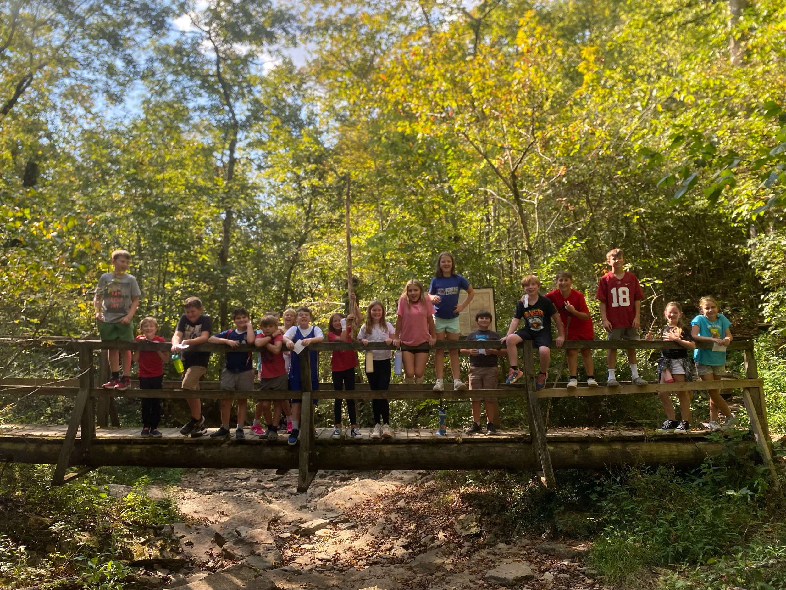 Covered Bridge with Seating – A charming spot for quiet reflection, prayer, or small group discussions surrounded by trees and the sounds of a gently rolling creek.